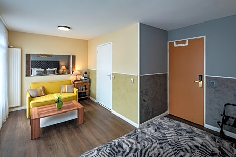 Providing free toiletries and bathrobes, this twin/double room includes a shared bathroom with a hairdryer and slippers. The twin/double room provides a tea and coffee maker, a wardrobe, a safe deposit box, heating, as well as a flat-screen TV.
