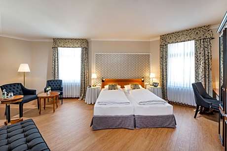 This historic hotel is located in the center of Eisenach, 820 feet from the main train station. It has a Gault Millau-awarded restaurant and free WiFi internet access in all rooms. Dating back to 1897, Hotel Kaiserhof Eisenach offers traditional accommodations with individually decorated rooms, finished with floral, English-style fabrics. The Hofbräu in Nikolaitor restaurant is located in the basement of the hotel (open from Tuesday to Saturday, 5 p.m. to 10 p.m.); they also serve Thuringian cuisine. The historic Turmschänke wine restaurant offers Gault Millau awarded cooking make with fresh ingredients. The large lobby area offers a bar, a beauty salon and a hairdresser's. The hotel also has a sauna and a massage area.