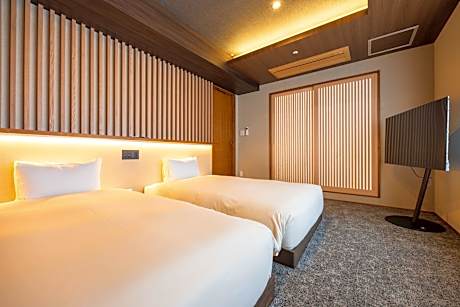 The spacious quadruple room offers air conditioning, tatami, as well as a private bathroom boasting a bath and a shower. The quadruple room features a flat-screen TV, a mini-bar, a coffee machine, a seating area as well as city views. The unit has 2 beds and 4 futons.