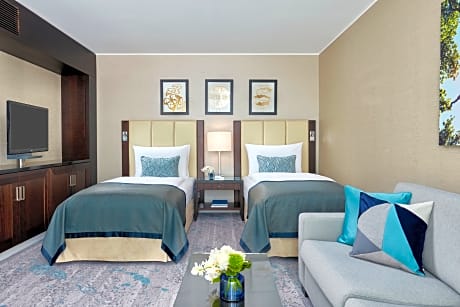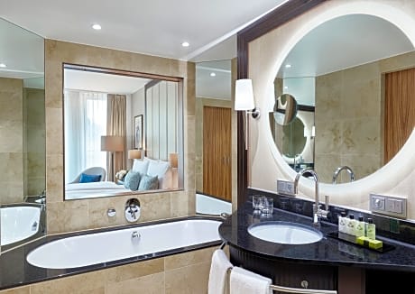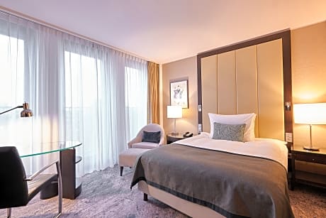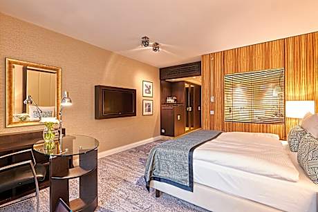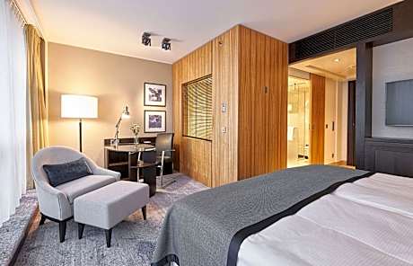 This hotel is located on the exclusive Königsallee shopping street in Düsseldorf. It offers a large health club, creative cuisine, and soundproofed rooms with elegant décor. The spacious rooms of the Hotel Kö59 Dusseldorf feature free standard WiFi, a flat-screen TV, 3 telephone lines, and a marble bathroom. Tea and coffee are free. The Executive Suite also enjoys a separate living room At the Hotel Kö59 guests over 18 enjoy complimentary access to the adjoining Holmes Place Fitness Club. The Holmes Place ofers a modern Gym, a sports pool, a whirl pool and a sauna. Regional and international food is served in the atmospheric Kö59 restaurant. The public car park Q-Park Kö59 offers direct access to the hotel.
