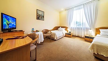 Located in the center of Ostrów Wielkopolski, Komeda is a hotel with a relaxed atmosphere featuring a beautiful restaurant and a night club. Hotel Komeda’s rooms with attached bathroom are spacious, warmly decorated and equipped with a flat-screen satellite TV and free Wi-Fi. The apartments offer extra space. The wonderful restaurant of Hotel Komeda is a great place to enjoy traditional, family recipes or dishes from around the world. On warm days, barbecue parties are held in the garden. There is a paid parking in front of the hotel and a free parking at the back. Adjacent to a peaceful park, Hotel Komeda can take care of the organization of meetings, conferences and social events.