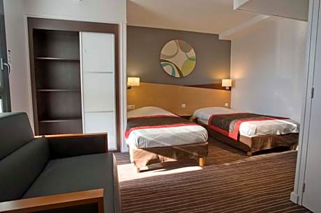 The Kyriad Hotel Dijon Gare is 394 feet from Dijon Train Station and offers soundproofed rooms with free Wi-Fi access. Each air-conditioned bedroom has a tea and coffee maker and satellite TV. All the rooms have a private bathroom. Extras include a fitness center and a sauna upon reservation. The hotel reception is open 24 hours, 7 days a week. There are 2 TV lounges on the ground floor and a computer with internet access is available for guests' use. The hotel has a bar and large groups can be catered for on request, 24 hours a day. A hot buffet breakfast is available daily. The hotel is 4.3 mi from Dijon Bourgogne Airport. A close garage parking is available at an additional cost. The Palais des Congrès is a 7-minute tram ride away and both the university campus and the Toison d'Or shopping center are less than 20 minutes from the property.