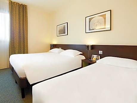 This Kyriad is located near Orly airport, which is serviced by a free shuttle. It is 9.3 mi from central Paris and offers free high-speed WiFi access. Kyriad Hotel Orly Aéroport offers soundproofed ,guest rooms equipped with modern private bathrooms and a TV. A laptop is available for use at reception and a full breakfast buffet is available every day. The Orly Airport Kyriad Hotel at Athis-Mons offers many easy-access routes for the major tourist and business hotspots by way of public transportation or by motorway. An aquatic center with hammam and balneotherapy is located in close proximity to the hotel.