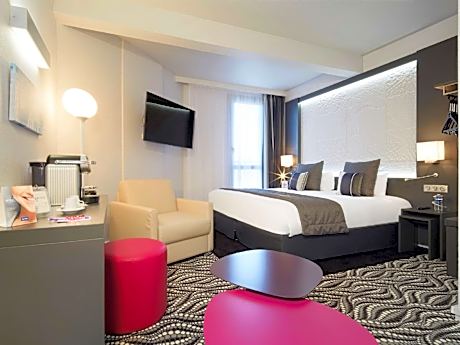 Located in Bezons, a 15-minute drive from La Défense business district, Kyriad Paris Ouest – Bezons La Défense offers air-conditioned guest rooms with free Wi-Fi access. There is a 24-hour front desk and free private parking is possible on site. Each room includes a flat-screen TV with satellite channels and a welcome tray with tea, coffee and biscuits. The private bathroom is fitted with a bath or shower and has a hairdryer and free toiletries. A buffet breakfast is available daily, and you may enjoy other meals in the hotel’s restaurant. Central Paris is a 30-minute drive from Kyriad Paris Ouest – Bezons La Défense. Access to both the A14 and the A 86 motorways is within a 10-minute drive from the hotel.