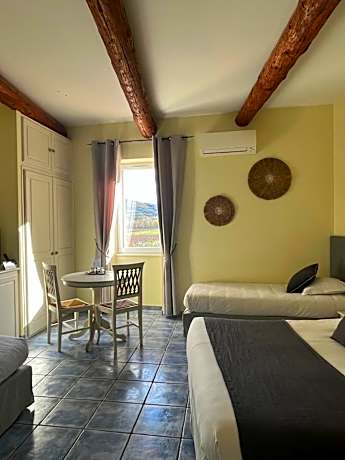 These rooms open onto a furnished terrace and offer view of the Mont Ventoux and the vineyard. They all have a bathtub. They all have double bed and a single bed.