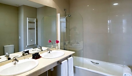 Offering free toiletries, this quadruple room includes a private bathroom with a bath, a shower and a bidet. The air-conditioned quadruple room offers a flat-screen TV with satellite channels, a wardrobe, parquet floors, a tiled floor as well as city views. The unit offers 2 beds.