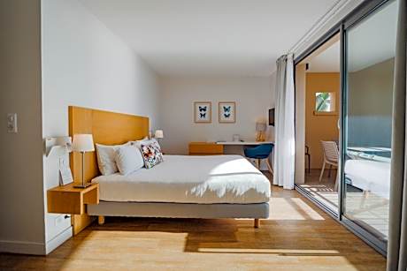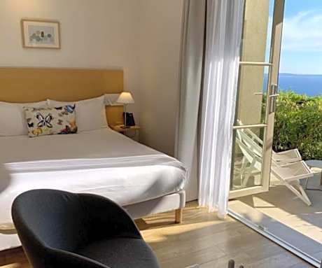 The hotel**** La Villa Douce in Rayol-Canadel has been open year round since 2017. This intimate and confidential hotel has 31 rooms with terrace or balcony, all facing south with a panoramic sea view. All rooms are air-conditioned and equipped with a television, free Wi-Fi and "Rituals" hospitality products. Also available are PMR rooms for guests with limited mobility. A sweet and savory buffet breakfast and tea time are included in your stay. The hotel has a bistronomic restaurant, Le restaurant l'Envol, and a tapas bar. The outdoor pool is heated in season. A beauty institute partnering with the "Origines" brand is available. Parking is free with charging stations. Allocated paid parking spaces are available. You can discover the area and in season, take advantage of a free Tesla shuttle service to our partner private beaches.