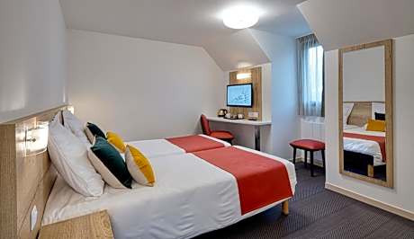 Located in Mesnil-Saint-Père, 15 miles from Espace Argence, Alba Hôtel Lac d'Orient provides accommodations with a garden, free private parking, a terrace and a restaurant. Providing a bar, the property is located within 15 miles of Troyes Train Station. The hotel features family rooms. Guest rooms are equipped with a flat-screen TV with cable channels, fridge, an electric tea pot, a shower, free toiletries and a closet. Featuring a private bathroom with a hairdryer, rooms at the hotel also offer free WiFi, while some have a garden view. Buffet and continental breakfast options are available at Alba Hôtel Lac d'Orient. The accommodation offers 3-star accommodations with an indoor pool, sauna and hot tub. You can play table tennis at Alba Hôtel Lac d'Orient, and the area is popular for cycling. Aube Stadium is 14 miles from the hotel, while Nigloland is 15 miles away. Châlons Vatry Airport is 48 miles from the property.