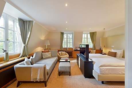 This family-run hotel features an impressive castle-style façade and offers elegant accommodations, free internet access, fine dining and extensive spa facilities in Rotenburg. It is a 12-minute walk to the train station which has direct connections to Hamburg and Bremen. Look forward to the comfort and discreet luxury of the spacious rooms and tower suites offered by the Hotel Landhaus Wachtelhof. Start your day with the rich and varied breakfast buffet, and enjoy a tempting afternoon coffee with cake in the conservatory and café and all of that is subject to a charge. The 3281 ft² Wachtelhof-Therme spa offers an exclusive, Mediterrannean ambiance with an indoor pool, a range of saunas, a solarium, a steam room, themed bathing areas, and a massage service. Guests can relax in the swimming pool and saunas or simply take a romantic stroll in the hotel's leafy garden with its own pond. At the end of a busy day, let the Wachtelei gourmet restaurant spoil you with excellent regional and seasonal dishes with a French influence.The fireplace lounge and cozy wine cellar invite you to round off your evening with a relaxing drink. A parking garage is available for a surcharge.