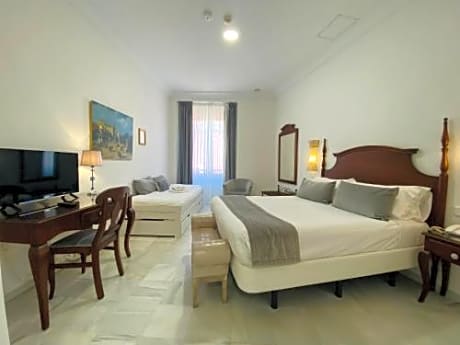 Housed in an elegant 19th-century building, this hotel is in Cádiz’s old town, just 3 minutes’ walk from the port. It features a roof terrace and free WiFi. The air-conditioned rooms at Hotel Las Cortes De Cádiz feature a flat-screen TV. Each one comes with a private bathroom with a hairdryer. The Las Cortes de Cádiz serves a daily breakfast in the café. You can enjoy traditional Andalusian food and tapas for lunch and dinner in the restaurant. Cádiz' railway and bus stations are within 10 minutes' walk of the hotel, while La Caleta Beach is a 15-minute walk away. The surrounding area offers a variety of tapas bars, shops, and restaurants. Jerez Airport is a 45-minute drive from Las Cortes. Parking is available nearby at an extra cost.