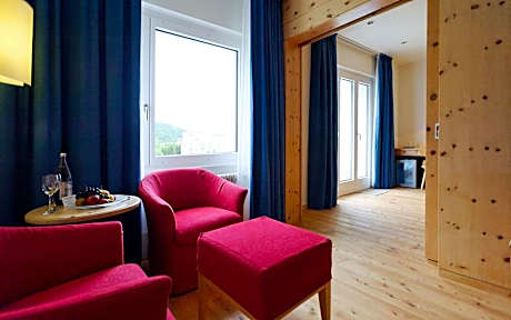 The Hotel Laudinella enjoys a quiet location in St. Moritz-Bad and offers you superb views of the lake and the surrounding mountains. The Signal cable car is only a few minutes' walk away and from the nearby public bus stop you can get to the center of St. Moritz within 5 minutes. When staying 2 nights or more, ski passes can be purchased at the reception. 4 newly renovated restaurants, 2 bars and a take-away promise a special dining experience. Choose between Asian cuisine (Thai and Japanese incl. sushi), a large variety of Italian dishes incl. Pizza as well as international cuisine (buffet style). If you book the halfboard arrangement you can chose out of the different halfboard menüs of each restaurant - for CHF 59.00 per person and night, bookable for the entire stay. All guest rooms at the Laudinella hotel offer views of the surrounding mountains and about half of them have a balcony. Hotel wellness facilities (sauna, steam bath, relaxation room) are currently under construction and will re-open in December 2025. For this reason, there is a scaffolding on one side of the building (until autumn 2025) and at times light construction noise can be heard at times outside of the hotel. As guest of the Hotel Laudinella , you enjoy complimentary access to the spa at the neighboring Hotel Reine Victoria. Wi-Fi is available in public areas free of charge. There is a mountain bike room provided for your convenience as well. in addition, you can also benefit from the Laudinella's free pick-up service from the train station (please notify the front desk in advance) and free public parking facilities on site. During the Summer Season (May to October) you can enjoy complimentary use of all public transport and open mountain cableways in the Upper Engadin. In Winter you can take advantage of our special Hotel Ski Pass offer – just CHF 47.00 per night, bookable for your entire stay.