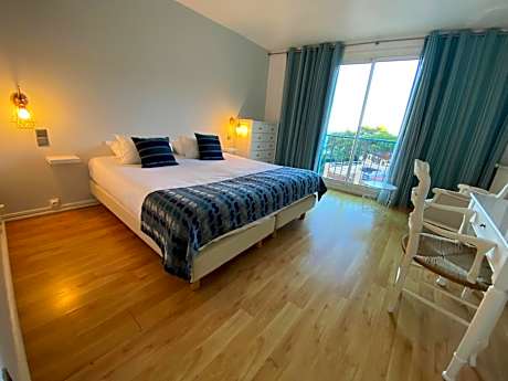 Located a few yards from the La Cortina windmill, the establishment elegantly overlooks the sea over the bay of Collioure, its royal castle and its famous Noter Dame des Anges bell tower. Our rooms thus offer you comfortable accommodations in a Mediterranean and modern setting. You can admire this splendid view from our rooms as well as our solarium. All our rooms are equipped with private bathroom, television, reversible air conditioning and a reception service. We kindly inform you, despite some pictures we can't erase on the internet, the hotel doesn’t have a swimming pool any longer.