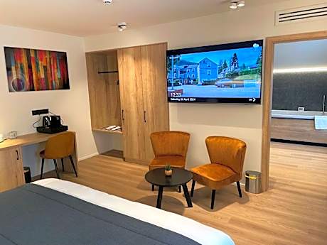 Hotel Le Charme de la Semois offers modern rooms near the river Semois. All guests have access to the heated outdoor swimming pool and the furnished terrace with a view of the Semois river. Free Wi-Fi is available. Rooms at Le Charme de la Semois feature a balcony, large windows and a red décor. They are fitted with a seating area, a desk and a flat-screen TV. The bathroom is fitted with either a bath or shower. A hairdryer and free toiletries are provided. The hotel has a restaurant which serves traditional dishes from the seasonal menu. It also has a snack bar and a bar where guests can relax with a drink. Fort Bouillon is a 15-km drive. Fort de Sedan is 12 mi. The nearest train station, Gare de Carlsbourg, is 16 mi away.
