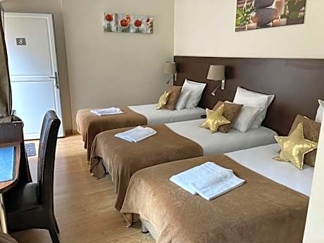 Featuring 2-star accommodations, Hôtel Le Saint Patrice is located in Bayeux, a 4-minute walk from Cathedrale Notre Dame de Bayeux and half a mile from Baron Gerard Museum. The property is around a 13-minute walk from Museum of the Bayeux Tapestry, 5.3 miles from German Battery of D-Day and 6.8 miles from D-Day Museum. The hotel features family rooms. At the hotel, every room includes a desk. Featuring a private bathroom with a shower and free toiletries, rooms at Hôtel Le Saint Patrice also provide guests with free WiFi, while some have a city view. All guest rooms in the accommodation are equipped with a flat-screen TV and a hairdryer. Guests at Hôtel Le Saint Patrice can enjoy a buffet or an American breakfast. Arromanches 360 is 7.3 miles from the hotel, while Omaha Beach Memorial Museum is 12 miles away. Caen–Carpiquet Airport is 17 miles from the property.
