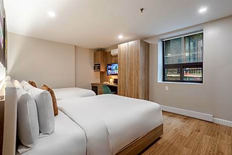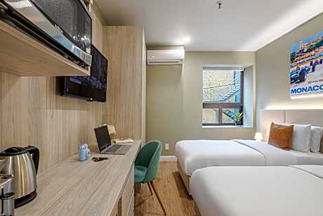 At Olympia, exceptional service and top-notch amenities create a memorable experience for guests.Complimentary internet access is available in the hotel to ensure you stay connected during your visit. Amenities at taxi offered by Olympia simplify the organization of your excursions, tourist activities, and other adventures in Montreal (QC). For guests with their own vehicle, parking facilities are provided. Continuously receive the support you require through front desk amenities such as concierge service and safety deposit boxes. Additionally, you can obtain minor travel essentials and miscellaneous items at the convenience stores without departing from the Olympia.Due to health concerns, smoking is strictly prohibited within the entire premises of hotel.Accommodations come equipped with all the conveniences required for a restful night's slumber.A selection of rooms at Olympia come furnished with air conditioning to cater to your needs and comfort. A few chosen rooms are equipped with television and cable TV to ensure guest amusement. In certain chosen rooms, a refrigerator is conveniently available for your use. In the hotel, certain guest bathrooms come equipped with essential bathroom amenities, such as a hair dryer, toiletries and towels, ensuring a comfortable stay for guests. At Olympia, affordable refreshments are available 24/7 through the convenient vending machines on-site.At Olympia, guests can take pleasure in the delightful recreational amenities provided for their entertainment. At the hotel fitness center, you have the option to engage in your daily exercise routine or simply alleviate your jet lag by breaking a sweat.