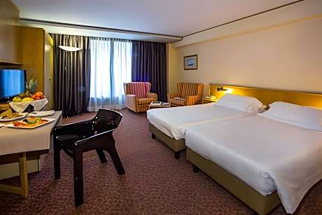 Hotel Les Jumeaux Courmayeur is located in the heart of Courmayeur, 262 feet away from the Funivia Montblanc ski elevator, linking with the Checrouit ski slopes. The Les Jumeaux is made of 2 buildings. The main building includes the lobby, reception, bar and a restaurant. The other is 492 feet away, close to the ski elevator. Here you will find a further breakfast room. The hotel also provides outdoor parking, a garage, room service, laundry service and a free ski deposit. All the spacious rooms feature a balcony, and some overlook the mountains. At the piano bar you can sip a drink at the sound of live music. The restaurant is open for lunch and dinner: the chef will be glad to delight you with his regional and international cuisine. Please note that on Ferragosto (August 15) and New Year's Eve (December 31), a mandatory charge for the Gala Dinner applies, to be paid directly at the hotel. The costs are as follows: Ferragosto (August 15): €50 per adult, €30 per child under 12 New Year's Eve (December 31): €70 per adult, €40 per child under 12 There is a supplement of 21 EUR per day for pets.