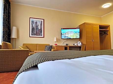 With a rooftop terrace boasting views of Lilienstein Mountain and the River Elbe, this hotel is centrally located in the town of Bad Schandau on the edge of Saxon Switzerland National Park. There is a full restaurant with a bar and a large furnished terrace at the hotel. Breakfast is offered each morning and packed lunches are available. Free WiFi access is offered in all areas. Hiking and cycling are popular ways to explore the picturesque surroundings. Guests may want to visit the Therme Toskana Wellness Center located less than 328 feet from the property. Bad Schandau Railway Station is 0.9 mi from the property. Paid parking spaces can be found nearby.