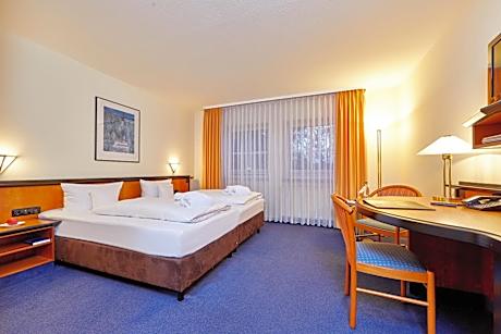 A sauna, Turkish steam room and sunny garden terrace are offered by this quietly located 4-star hotel in the Linderbach district of Erfurt. Hotel Linderhof features classic-style rooms with free wired internet. Regional and international dishes are served in the traditional-style restaurant, where coffee and homemade cakes are also available. Each morning, a rich Thuringian buffet breakfast is provided. After dinner, guests can enjoy drinks at the bar or in the hotel’s bright conservatory. Rooms at the Hotel Linderhof include a flat-screen TV, a free bottle of water and a work desk. Each one offers carpeted floors, wooden furnishings and plenty of natural light. Erfurt Old Town is 3.1 mi away, while it is 4 mi to Erfurt Train Station. The A4 motorway is 5.3 mi from Hotel Linderhof, and free on-site parking is provided. License Number(s): DE306 569 441