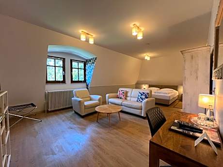 Offering free toiletries, this quadruple room includes a private bathroom with a shower and a hairdryer. The quadruple room features carpeted floors, a seating area with a flat-screen TV with cable channels, a wardrobe, a sofa, as well as heating. The unit offers 3 beds.