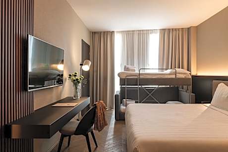 This family room has air conditioning and mini-bar, room size 40 m2 and 2 bathrooms, LCD TV 50 inches with Sky