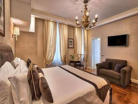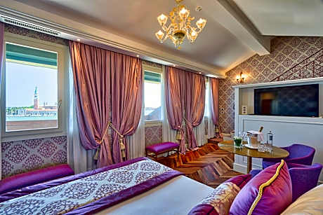 Located in a privileged position on the Riva degli Schiavoni, just five minutes' walk from St. Mark’s Square, the Londra Palace Venezia is an icon of elegance and charm. Here, the allure of history blends with contemporary sophistication, offering free Wi-Fi and uniquely designed rooms where timeless luxury meets modern, refined details. Most rooms offer breathtaking views of the St. Mark’s Basin and the picturesque Island of San Giorgio. Each room is unique, inspired by the colors, themes, and textures of Venice, the city that is both the oldest and the most modern. The elegant furnishings and attention to detail transform every space into an exclusive stay experience. The rooms are equipped with a mini-bar and satellite LCD TV, and some feature a balcony or private terrace, offering moments of absolute relaxation with views of the lagoon. The renowned LPV Restaurant offers an innovative take on Venetian cuisine, with dishes that enhance authentic flavors in a contemporary style. During milder days, breakfast, lunch, and dinner can be enjoyed on the beautiful terrace overlooking the St. Mark’s Basin, creating an unforgettable gastronomic experience immersed in a refined and captivating atmosphere. Londra Palace Venezia is located 164 feet from St. Zacharias’ Church, 1312 feet from the Doge’s Palace, and close to the San Zaccaria vaporetto stop.