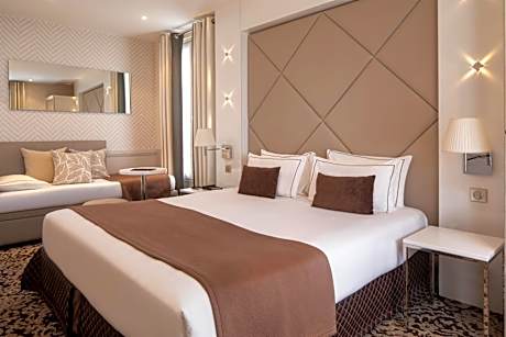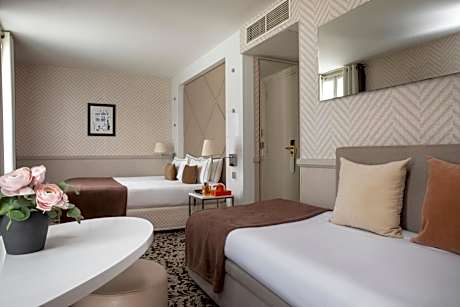 At Hotel Longchamp Elysees, exceptional service and top-notch amenities create a memorable experience for guests. Complimentary internet access is available in the hotel to ensure you stay connected during your visit. Arrange your trips to and from the airport using the hotel's convenient transportation services booking.Discover the wonders of Paris with ease by utilizing the services provided by taxi, car hire and shuttle.Continuously receive the support you require through front desk amenities such as concierge service, express check-in or check-out, luggage storage and safety deposit boxes.At the hotel, their ticket service and tours is also capable of assisting with booking tickets and securing reservations for entertainment and adventures. Always look your best in your preferred attire with the dry cleaning service and laundry service provided at Hotel Longchamp Elysees.Craving relaxation? In-room amenities such as 24-hour room service, room service and daily housekeeping allow you to maximize your time spent inside the room.Due to health concerns, smoking is strictly prohibited within the entire premises of hotel. For the health and well-being of all guests and staff, smoking is restricted exclusively to assigned zones. Accommodations come equipped with all the conveniences required for a restful night's slumber. A selection of rooms feature linen service, blackout curtains and air conditioning to ensure your comfort and convenience. A few chosen rooms are equipped with television, in-room video streaming and cable TV to ensure guest amusement. Hotel Longchamp Elysees offers a hair dryer, toiletries and bathrobes in the restrooms of specific accommodations. A delightful breakfast is the perfect way to begin your day, and at Hotel Longchamp Elysees, you can always indulge in a scrumptious meal on-site. All adore a delightful cup of coffee! An on-site coffee shop ensures you can relish a cup of authentic, freshly-brewed coffee every morning -- or whenever you desire it.