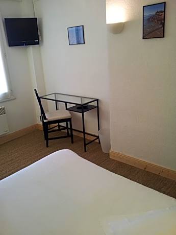 Double room patio side: Looking at the village, on the 1st floor, this room is equipped with a double bed, TV, a desk, wardrobe, a bathroom with shower, sink, toilets. Just a few steps away from the beach, and in the center of the village.