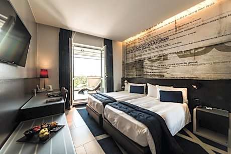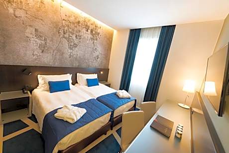 This room has an elegant classic design and is furnished with marble or lavic stone floors. Each room has a 43-inch LCD TV with satellite channels, a large work area and a comfortable bed with satin covers. The marble bathroom has free natural toiletry products. Wi-Fi is free.