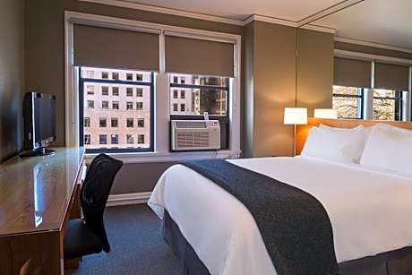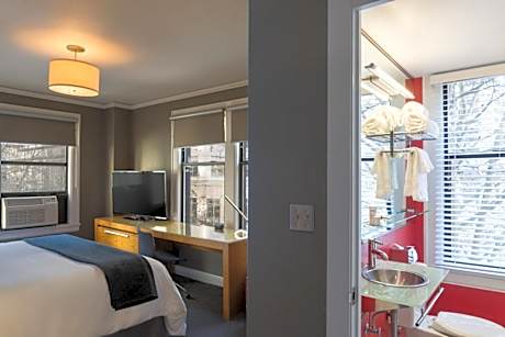 This design hotel in downtown Seattle is 1 block from the Westlake Ave & Olive Way Light Rail station. Hotel Max features original paintings and photographs by Seattle artists. The contemporary rooms, decorated with paintings, offer a flat-screen cable TV, Bluetooth clock radio, and local mini-bar. The bathrooms offer bathrobes and complimentary toiletries. Guests can take advantage of the in-room fitness amenities, including streamed online workout videos, a yoga mat, resistance bands, weights, and a core ball. During their stay, guests can workout in the 24-hour fitness center. Bicycle rentals are available for guests to explore the city. Hotel Max is within 1 mile of the Seattle Aquarium, Space Needle and Olympic Sculpture Park.