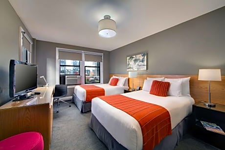 This design hotel in downtown Seattle is 1 block from the Westlake Ave & Olive Way Light Rail station. Hotel Max features original paintings and photographs by Seattle artists. The contemporary rooms, decorated with paintings, offer a flat-screen cable TV, Bluetooth clock radio, and local mini-bar. The bathrooms offer bathrobes and complimentary toiletries. Guests can take advantage of the in-room fitness amenities, including streamed online workout videos, a yoga mat, resistance bands, weights, and a core ball. During their stay, guests can workout in the 24-hour fitness center. Bicycle rentals are available for guests to explore the city. Hotel Max is within 1 mile of the Seattle Aquarium, Space Needle and Olympic Sculpture Park.