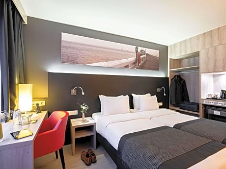 Mercure Oostende is located only 820 feet from the sandy beach and from the Casino Kursaal. The hotel is located close to the main shopping area of Ostend. Private parking is available near the hotel for a surcharge. Each of the modern rooms at Mercure Oostende has a flat-screen TV, a work desk and tea and coffee making facilities. Guests can enjoy a buffet breakfast featuring hot and cold dishes including scrambled eggs and bacon. The Premtime café serves an international à-la-carte menu for lunch and dinner. Coffee and local Belgian beers are just some of the beverages offered at Mercure Oostende's bar. Ostend is well-known for it's shopping, beach bars during the summer and culture including the Crystal Ship and Fort Napoleon. Bruges, featuring historic sights including the Belfort and Gruut Huys Museum, is only 30 minutes' drive away. The center of De Haan is less than 20 minutes from Mercure Oostende.