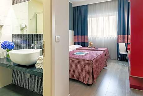 MICHELINO 75 by the Sydney Hotel offers modern rooms with free Wi-Fi, just 656 feet from the main entrance of Bologna's exhibition center. Parking is free, and the A14 motorway is 984 feet away. Colorful, air-conditioned rooms at the Michelino include a satellite 40" LCD TV and a safe. The stylish bathroom includes a shower and free toiletries. The hotel serves a generous breakfast buffet including hot food, and guests can enjoy the on-site bar. Bologna Centrale Station is 2.5 mi away.