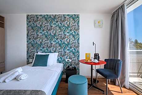 This comfortable hotel is located only 55 yards from the beach in Rabac, right on one of Croatia’s most beautiful bays. Part of the “Flower Hotel Complex” (Complesso dei Fiori), the Mimosa has 7 floors and 2 elevators. There is an entertainment program for children (6-12 years) as well as sports programs for adults. In front of the hotel there are 2 swimming pools, one of which is for children. The deck chairs at the swimming pool are included in the price. The complex stretches over 50 acres of lush Mediterranean vegetation, including the entire Maslinica Bay. All hotels, including the Mimosa, face the crystal-clear waters of the bay.