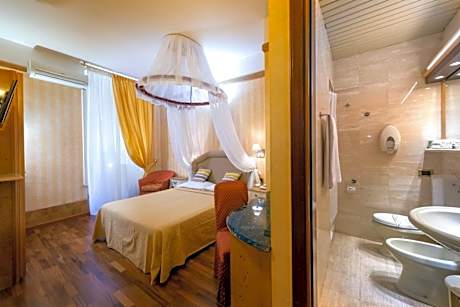 This elegantly furnished air-conditioned room features a four-poster bed, an LCD TV and a mini-bar. Private bathroom is complete with toiletries and a hairdryer.