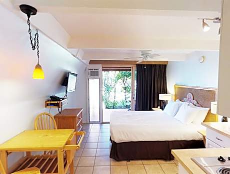 W20034758-01 This Kaunakakai hotel is located directly on Kamiloloa Beach and offers oceanfront rooms. This oceanfront hotel is modeled after a traditional Polynesian village and offers an outdoor swimming pool. Hotel Moloka'i features guest rooms with a microwave, coffee maker and refrigerator. Some rooms offer garden views. Guests at the Molokai Hotel can relax in a hammock or have a meal in the hotel's oceanfront restaurant, Hiro's Ohana Grill, which is open daily for lunch service at 11 a.m. to 4 p.m., light pupu's from 4 p.m. to 6 p.m. at the bar, and then dinner service from 6 p.m. to 9 p.m. Guests can rent scuba diving and snorkeling gear to use at the beach.