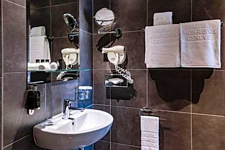 Only 1312 feet from the World Trade Organization, this hotel enjoys a scenic location facing a beautiful park and only a few minutes from the banks of Lake Geneva. It offers free use of public transport in Geneva and modern rooms with free WiFi. The property is 164 feet from the Perle du Lac Bus Stop and the bus reaches the Cornavin Main Railway Station within 8-10 minutes. Stylish rooms decorated in a contemporary color scheme feature at Hotel Résidence Mon Repos. Each is complete with a mini-bar, flat-screen TV and beautiful views of the park. Important international organizations such as the United Nations Office and World Health Organization (WHO) are within a 5-minute drive of the hotel. After an eventful day, unwind in Mon Repos Hotel’s lounge area or enjoy a bike tour in the city (free renting). Light snacks and a selection of Geneva beers, fine wines and cocktail can be enjoyed at the bar from Sunday to Thursday from 5pm to 11pm. The Mon Repos Hotel / Résidence is 0.9 mi from the Main Railway Station, which provides good connections to Geneva International Airport (2.5 mi). Light snacks and a selection of Geneva beers, fine wines and cocktail can be enjoyed at the bar from Sunday to Thursday from 6pm to 11pm.