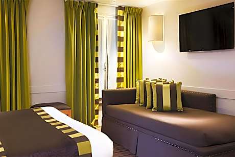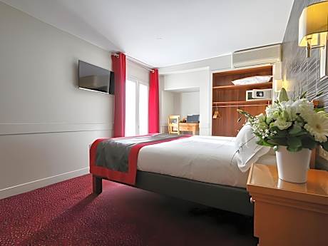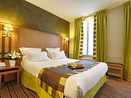 Located on a quiet street in Paris’ 9th arrondissement, Hotel Mondial is near the famous Opéra Garnier and Galeries Lafayette and Printemps department stores. The hotel has flat screen TVs, cable TV, and safes. Free Wi-Fi, private parking and a buffet breakfast are available. Microwavable meals and desserts can also be provided. Hotel Mondial’s central location and proximity to excellent bus and metro connections mean that guests are able to easily visit Paris’s sites such as the Louver museum, Tuileries Garden, Noter Dame and Place de la Republique.