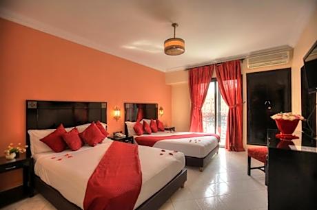 Located in the Gueliz district, just a few minutes' drive from the famous Jamaâ El Fna Square, this typically Moroccan hotel consists of 36 rooms, equipped with balcony, satellite television, central heating, individual air conditioning and telephone. The hotel offers a panoramic rooftop terrace with view over the city . After a relaxing day , retreat to the cozy atmosphere of the hotel's restaurant, a nicely decorated place where you can taste the particularity of Moroccan and International food. License Number(s): 40000HT0563