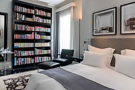 Elegant room offering a library, tea/coffee maker, and an LCD TV with satellite channels. The luxurious bathroom has soft bathrobes and slippers.
