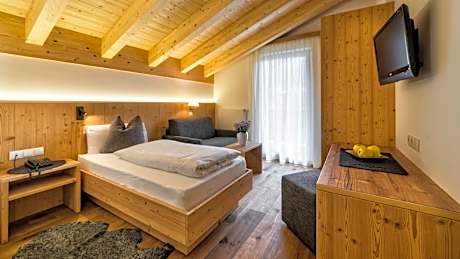Rooms featuring an oak-wood floor, balcony, bathroom with shower, toilet , bidet, hairdryer, large mirror and cosmetic mirror, safe, flat-screen satellite TV, telephone and free WiFi. The furniture is made of Swiss pine.