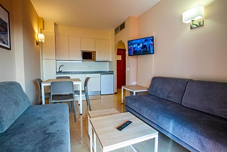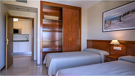 This charming complex is located on a main street on the edge of Fuengirola, a cosmopolitan city on Costa del Sol. Malaga Airport is a 23-minute drive from the property and travellers will find some of the most important tourist attractions close by which are perfect for the ones who like to explore. This accommodation is the best choice for those travellers wishing to enjoy a relaxing holiday based on the freedom of self-catering. The restaurant serves local Mediterranean specialities and the stunning pool bar is ideal to enjoy a moment of relaxation while having a refreshing cocktail. The spacious rooms are decorated with warm tones that create a cosy atmosphere, they are also equipped with all the essential amenities to have a pleasant stay.