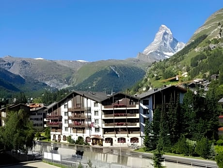In the center of Zermatt right across from the Sunnegga-Paradise Ski Lift and only a 5-minute walk from the train station, the Hotel National is the only hotel in Zermatt with exclusively south-facing rooms and a balcony in every room. Most rooms also offer views of the Matterhorn Mountain. Every room has a flat-screen TV, tea and coffee-making facilities and a modern bathroom. Fresh fruits and a welcome drink await you upon arrival. You can spend pleasant hours at National Zermatt - Matterhorn Views, Sunnegga Gateway & SPA’s bar with its fireplace. Free use of an iMac in the lobby is available. A DVD player and smartphone docking stations are provided upon request and you can also borrow DVDs and books on site. The hotel features a 3,875 ft² spa oasis with pool, caldarium, aroma grotto, sauna, dream shower, Kneipp grotto and tepidarium with Mimaroso warm beds. A wide range of different activities including Yoga, Pilates and Aqua Fitness is available on site. You can work out in the hotel’s gym and request a personal trainer at the property. Sun beds are available as well. A garden with a terrace and an ice bar in winter is a further feature of National Zermatt - Matterhorn Views, Sunnegga Gateway & SPA. Evenings with live music are organized on a regular basis. In summer, barbecue specialties from the region are available every Saturday.