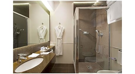 Featuring free toiletries and bathrobes, this triple room includes a private bathroom with a bath, a shower and a bidet. The air-conditioned triple room features a flat-screen TV with satellite channels, a mini-bar, a tea and coffee maker, a wardrobe as well as city views.