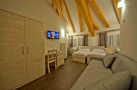 Large, bright room decorated in Alpine style with a sofa bed and a balcony overlooking the Noce River. Private bathroom provides a shower, while the room features a TV and free Wi-Fi.