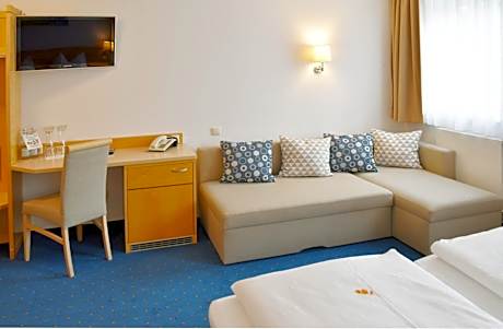 Hotel Nummerhof is located only 3 minutes' away from the Therme Erding Thermal Resort. It offers free Wi-Fi internet access. Look forward to quiet, modern rooms, including triple and quadruple family rooms, at the Hotel Nummerhof. A hearty breakfast buffet and a range of Italian coffee specialties await you each morning in the Nummerhof's breakfast room, providing a great start to a busy day. Guests are welcome to work out in the fitness studio or simply explore the lovely surrounding countryside along the many hiking and cycling paths. Make time to visit the famous Erdinger Weißbräu brewery, a 10-minute drive away. It is a 9-minute train journey from the center of Erding and a 20-minute drive from Munich Airport. You will find the nearest S-Bahn (city rail) station just 2625 feet from the Hotel Nummerhof. From here, the train can take you to Munich city center in 45 minutes and the Munich Riem trade fair in 25 minutes.
