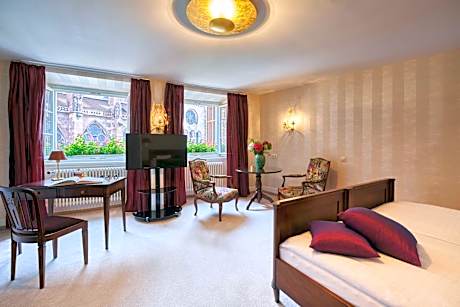 This historic, privately run hotel in Freiburg’s historic quarter is located in the heart of the pedestrian area, right across from the famous cathedral. It serves delicious regional cuisine. The Boutiquehotel Oberkirch im Zentrum provides traditionally designed rooms with private bathrooms and free broadband internet access. A colorful range of shops, cafes and restaurants are just a short walk away. Treat yourself to seasonal delights and Baden specialties in the Oberkirch’s widely appreciated restaurant. Make sure to try the local wines offered. License Number(s): Schlegel Gastronomie