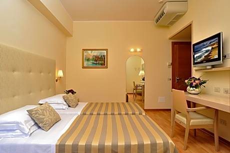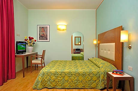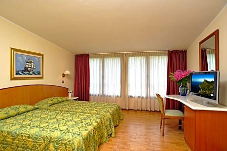 Just 10 minutes' walk from the Enzo e Dino Ferrari race track, the Olimpia is a modern hotel offering comfortable rooms with air conditioning, free WiFi and satellite TV. Imola historic center is nearby, and the Hotel Olimpia also enjoys proximity to the motorway access. Ideally located in this pleasant town, close to both Bologna in the west and Ravenna on the Adriatic coast, the Olimpia Hotel provides a large range of quality facilities and services. As well as recently refurbished rooms you will find a private garden, covered parking, and an American Bar. The Olimpia’s sophisticated restaurant can cater for up to 400 people and serves delicious local specialties and international favorites. Shuttle services are available to exhibition centers, airports and the nearby railway station.