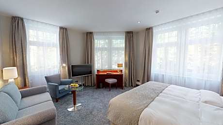 This historic 4-star hotel offers elegant rooms in the heart of Wiesbaden, near the Old Town and a 5-minute walk from Kaiser-Friedrich-Therme spa. It features a restaurant, garden and summer terrace. The Hotel Oranien Wiesbaden dates from 1879 and offers large and classically furnished rooms. All rooms have a TV, minibar, Wi-Fi and a private bathroom. A breakfast buffet is available each morning at the Oranien Wiesbaden. The Linner restaurant serves seasonal and healthy dishes. Drinks are also available in the cozy bar. The Hotel Oranien Wiesbaden is close to many bus stops, and a 25-minute walk from Wiesbaden Train Station. It is just 30 minutes by road or train from Frankfurt, the Frankfurter Messe exhibition center and Frankfurt Airport.