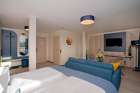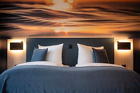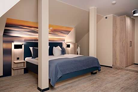 Our hotel, located just 164 feet from the beach, offers double rooms with balconies and partial sea views, double rooms with balconies and direct sea views, maisonette suites with two balconies (one offering partial and one direct sea view), and double rooms without balconies on the third floor. All rooms are easily accessible via our elevator or stairs. The rooms are equipped with a TV, mini-bar, in-room safe, hairdryer, vanity mirror, and shower/WC. Free Wi-Fi is available throughout the hotel. For ultimate relaxation, visit our beautiful new sauna. If a sauna isn't your preference, we also offer an infrared cabin with color-changing lights. This is included in the room rate for our hotel guests. Our hotel features its own restaurant and café on the ground floor: the "Strandrestaurant Achterdeck" and the "Café Eismeer." There, we prepare a delicious breakfast buffet for you daily. Find relaxation in our beautiful new sauna. If a sauna isn't your thing, we also offer an infrared cabin with color-changing lights. Furthermore, a beach shop for small souvenirs and the fashion boutique "Pink Lady" are located on the ground floor of the hotel.