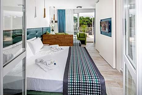 Hotel Palace is located in a quiet but central area in Lignano Sabbiadoro, 1000 ft from the sea. Most of the refined rooms offer a balcony. The Palace is also provided with comfortable lounges, a bar, and a TV room. The air conditioned restaurant offers a choice of menus with regional, Italian, and international dishes. Vegetarian and children's meals are available. Hotel Palace also offers free access to its swimming pools and whirlpool. One umbrella and 2 lounge chairs per room are included on the hotel's private beach. Courtesy bikes and parking are also included in the rate. Check out the new add-on option when booking and guarantee your half-board service in advance.
